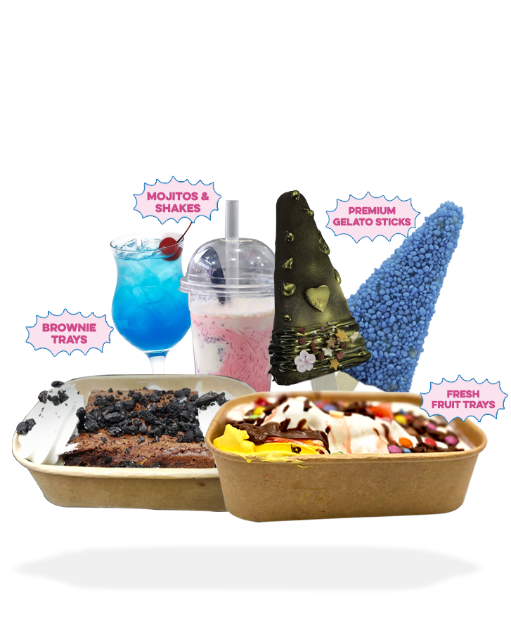 Our hot and delicious cookies dough filled with a brust of flavours served with in-house gelato soft Express and laxurious toppings.